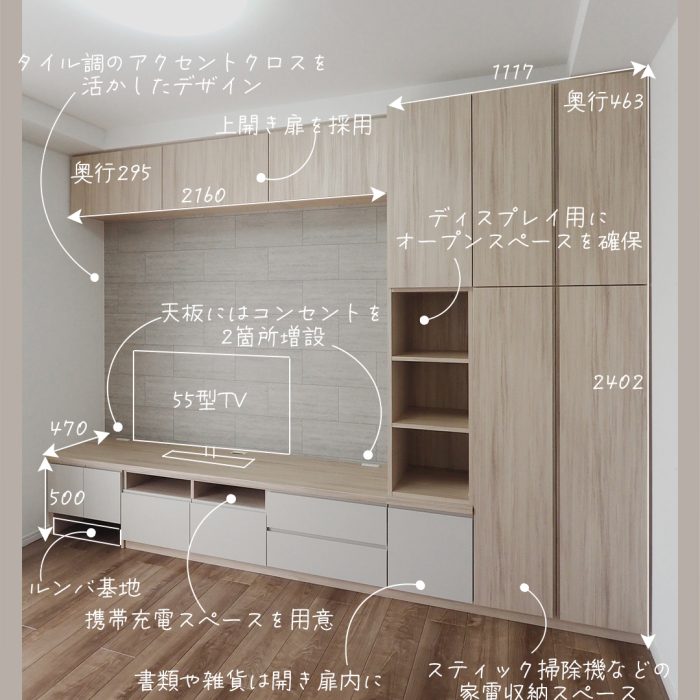 大阪府豊中市のマンションに納品させていただいた壁面収納です。大型テレビの壁掛け設置を軸に周辺機器や掃除道具、ワークスペースの確保まで、暮らしに必要な機能を一つにまとめたプ[…]