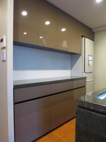 ・天板をシステムキッチンと同じ御影石に変更しました。