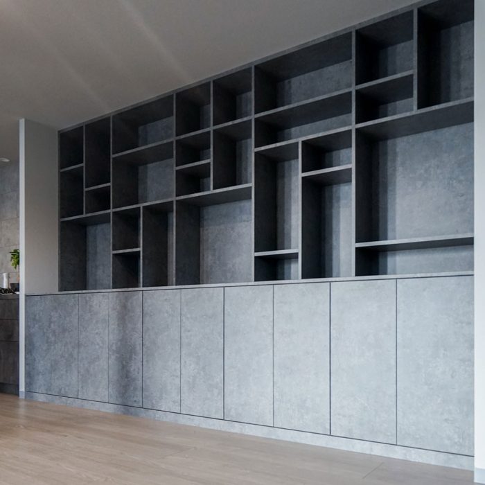 ランダムデザインの棚で空間をスタイリッシュに演出した壁面収納!