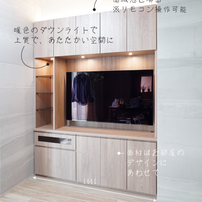 2種類の間接照明を使った壁面収納、リビング空間を素敵に演出!東京都文京区の新築マンションに納品をさせて頂いた壁面収納です。2種類の間接照明を使い、リビング空間を素敵に演出しました。リビングには家具を設置できる大きな開口がありま[…] - K.H.様