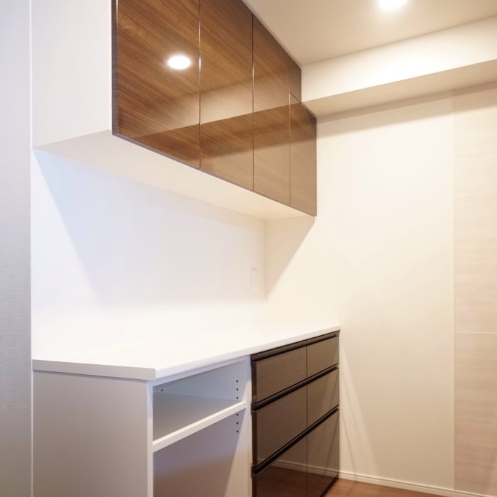 なにかと収納不足感じる洋室で,新たな収納空間を作る吊り戸棚!東京都品川区の新築マンションに納品をさせて頂いた洋室吊り戸棚です。天井付近に新たな収納空間を生み出しました。洋室に設置をさせて頂いた吊り戸棚です。何かと収納が不足が[…] - Y.H.様