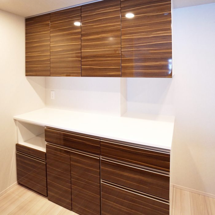 東京都江東区の新築マンションに納品をさせて頂いた食器棚です。お客様はマンション購入にあたり「保証が長く高品質」な食器棚を検討されておりました。食器棚の設置場所は冷蔵庫[…]