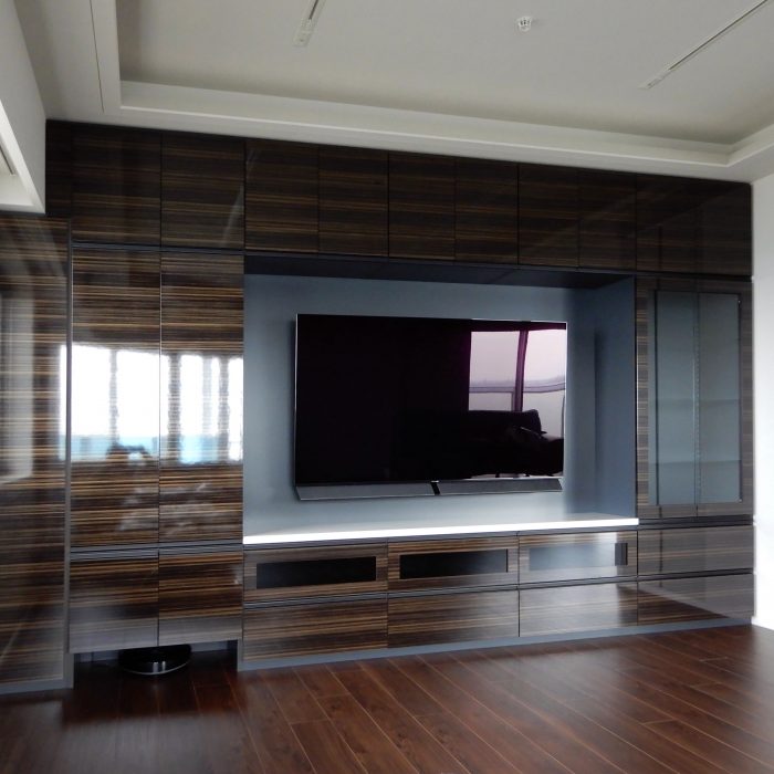 千葉県柏市の新築マンションに納品をさせて頂いた壁面収納です。圧迫感を無くすため、色使いにこだわりました。ミディアムブラウンの鏡面扉がインパクトがありますが、この面材は[…]