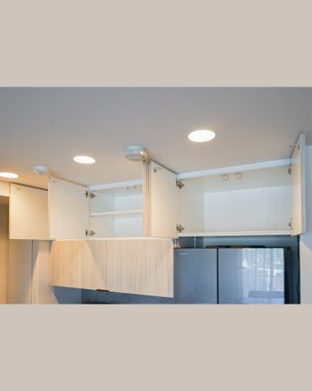 高い位置でも開閉しやすいよう、扉はプッシュオープン仕様で仕上げました。