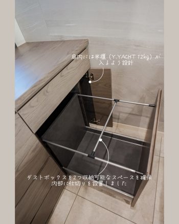 また、ダストボックス収納部はディバーダーレールで仕切り、日々の家事動線にも配慮。