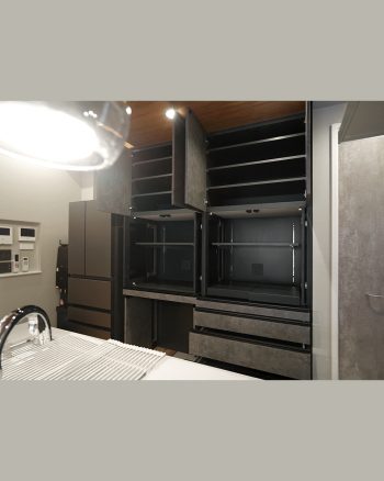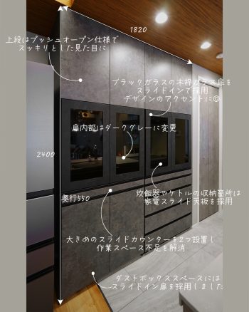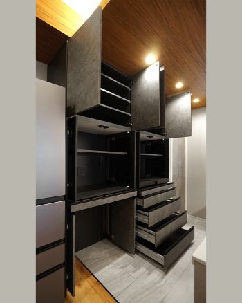 扉内部はダークグレーで統一し、扉を開けた際の印象も引き締まったものに仕上げています。