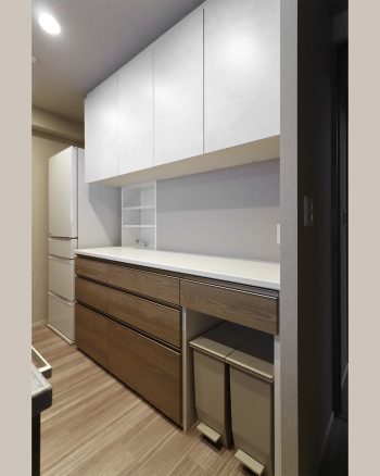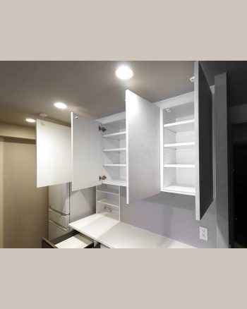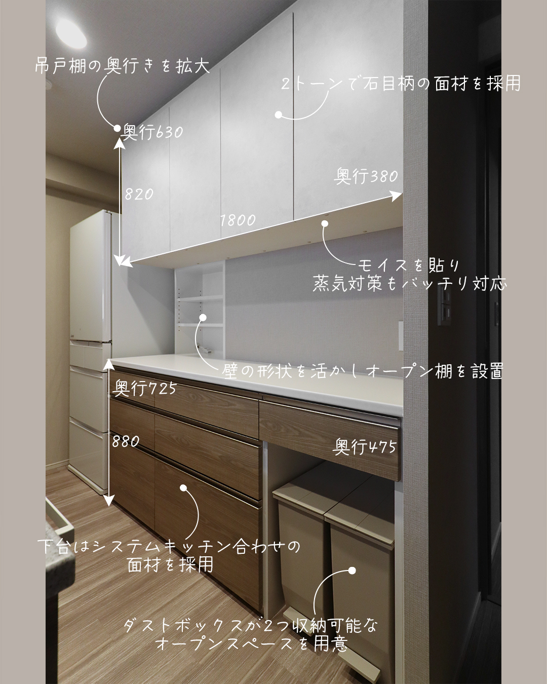 下部はキッチンの既存扉に色柄を合わせ、全体としても違和感なく空間に溶け込みました。