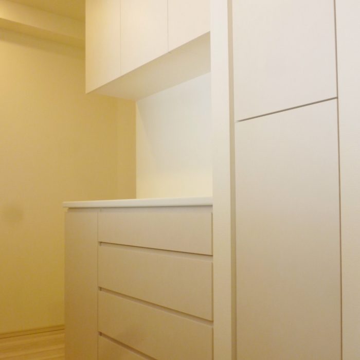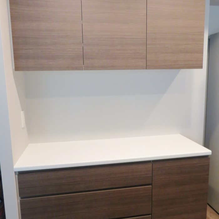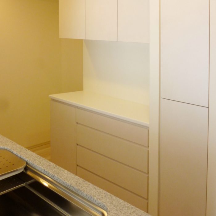 東京都の新築マンションに納品させて頂いた食器棚です。もともとマンションに標準仕様として付いているパントリーと面材・仕様を合わせることで、元から備え付けてある家具のように[…]