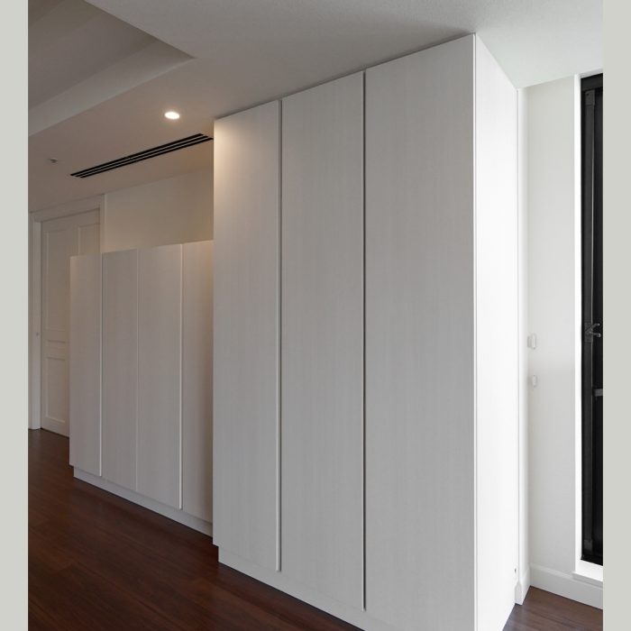 東京都港区のマンションに納品させていただいたクローゼットです。壁一面に設置したクローゼットは、建具と同じ木目柄の扉材を採用し、空間に自然と溶け込むよう設計されています[…]