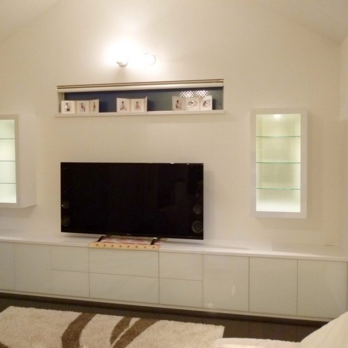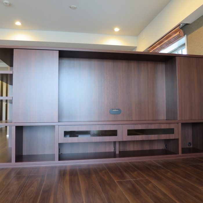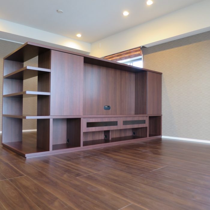 さいたま市の新築マンションに納品させて頂いたテレビボードです。L型の形状をしていますが、広いリビングの一角を書斎スペースとして間仕切る為の形状です。テレビボードの背面[…]