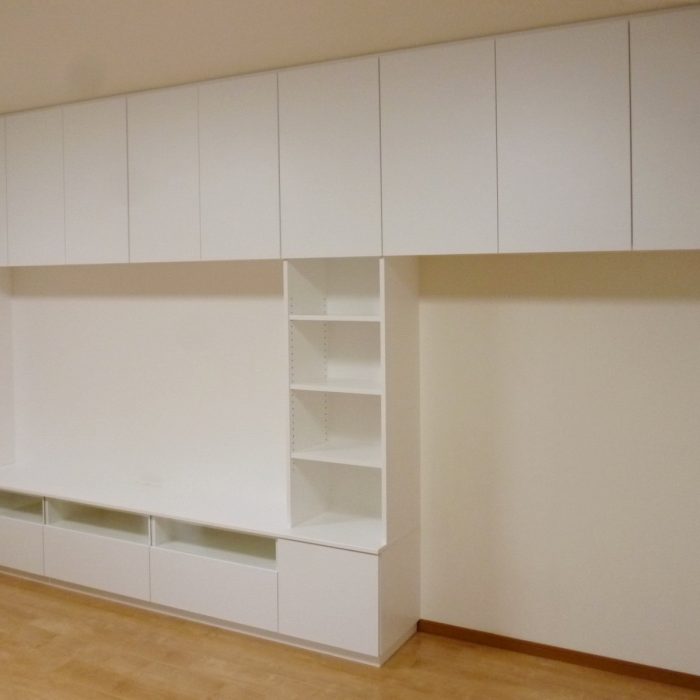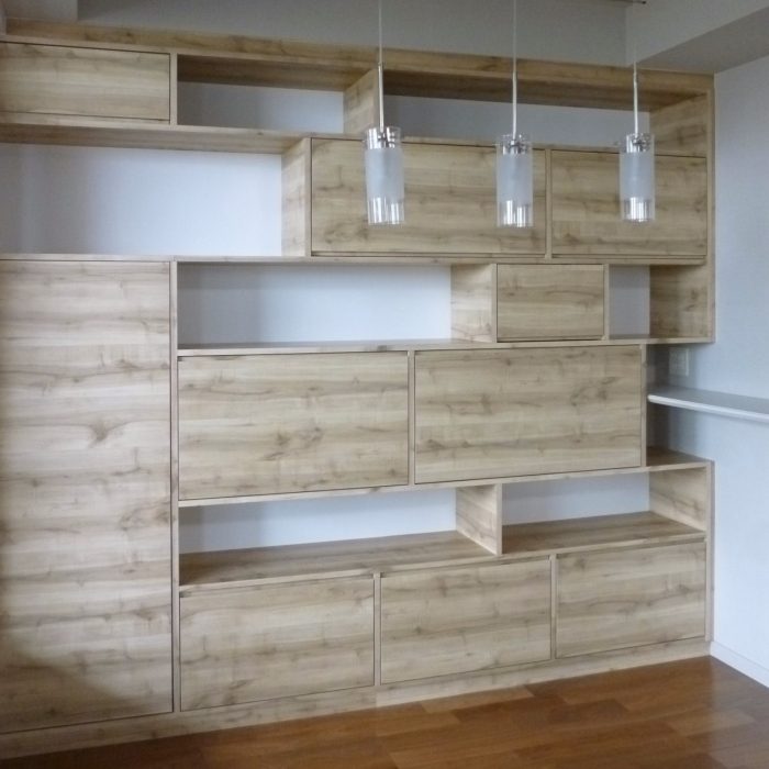 東京都の新築マンションに設置させて頂いた食器棚です。食器棚設置スペースは広いのですが、壁の形が複雑なのでここをいかに有効に使うかが最大のポイントでした。お客様とは内覧[…]