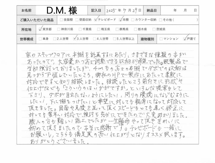 2025年3月31日 / D.M様の声 要望に対しても親身になって対応して頂きました