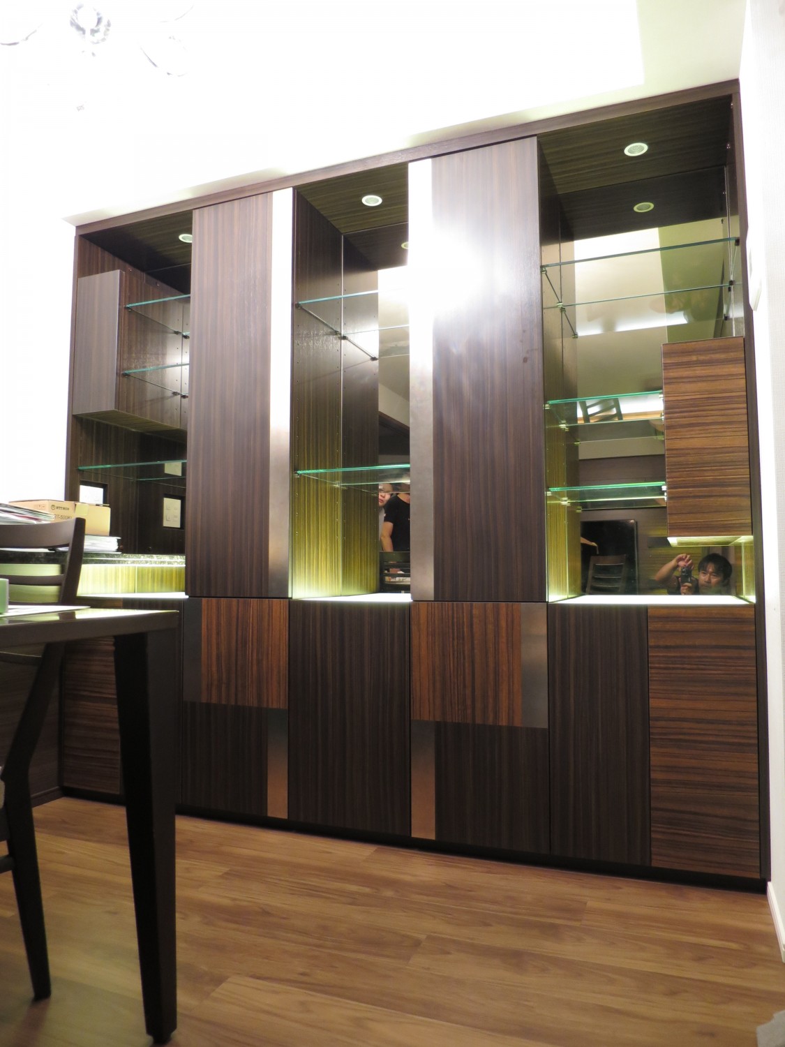 ガラスの棚板と背面のミラーとの相乗効果もあり実にいい雰囲気に仕上がりました。