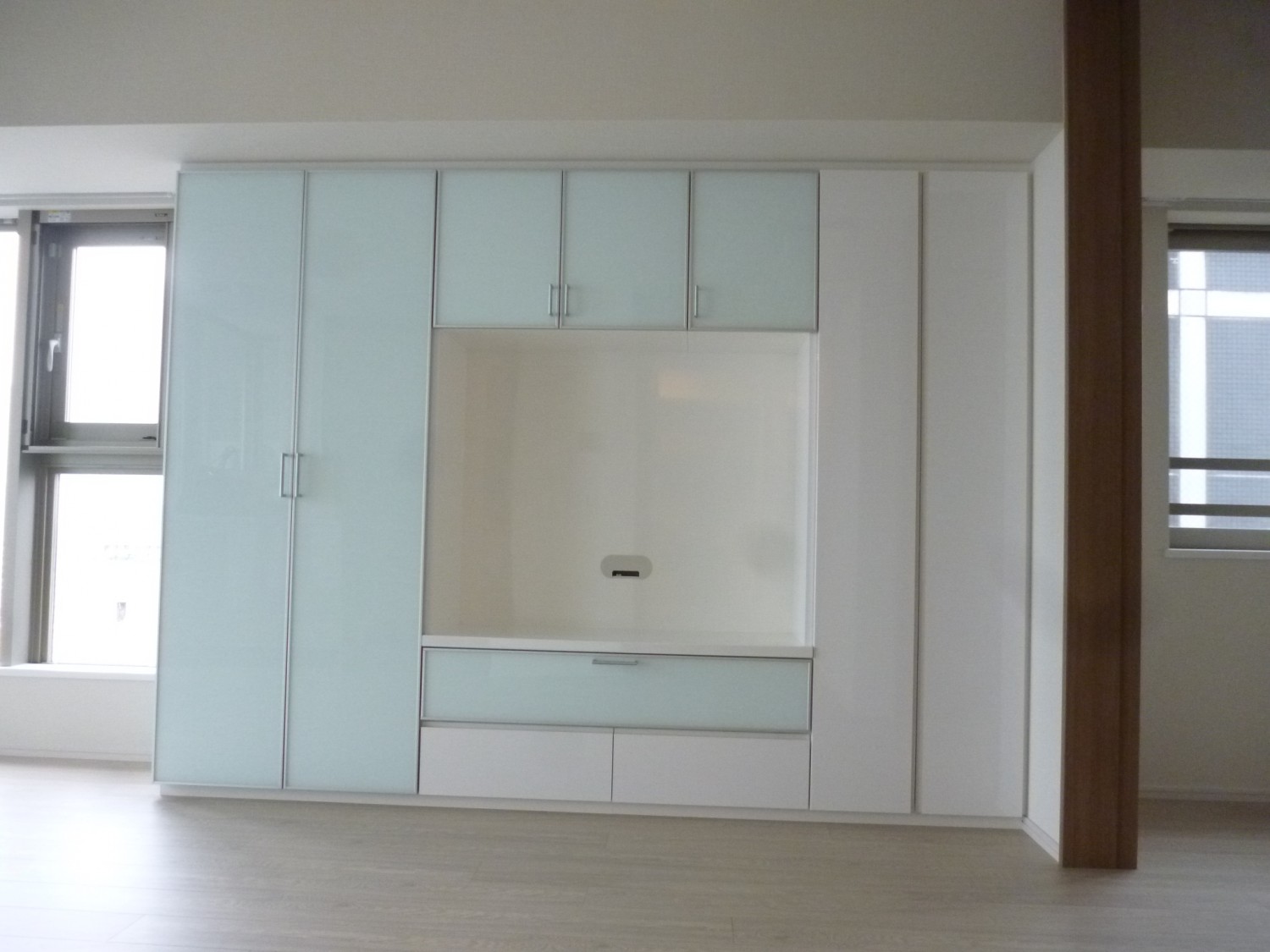 ここも通常であれば残りのスペースは等分して扉の幅を揃えるのが一般的な納まりとなります。