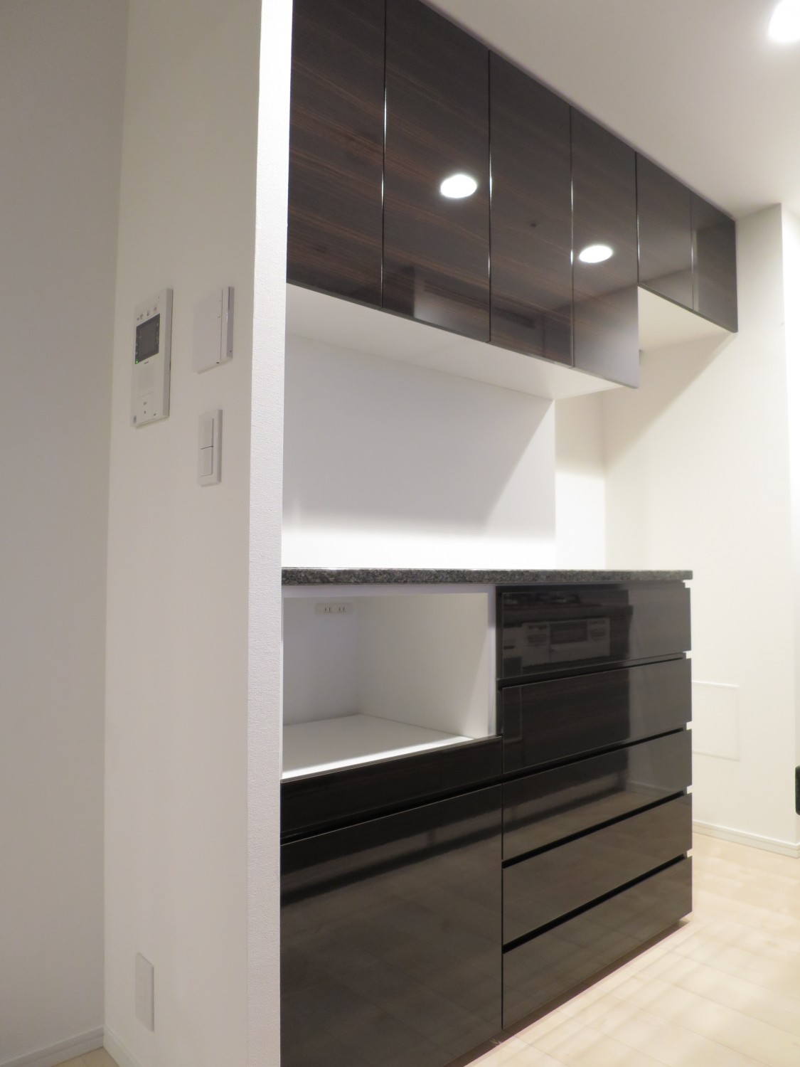 冷蔵庫上吊り戸棚も付け収納力UPです。