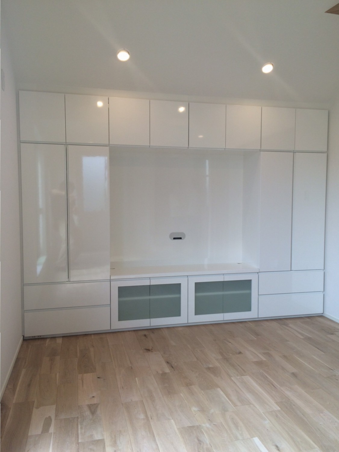 壁面収納は家具の真ん中にTVを置くデザインが多いのですが