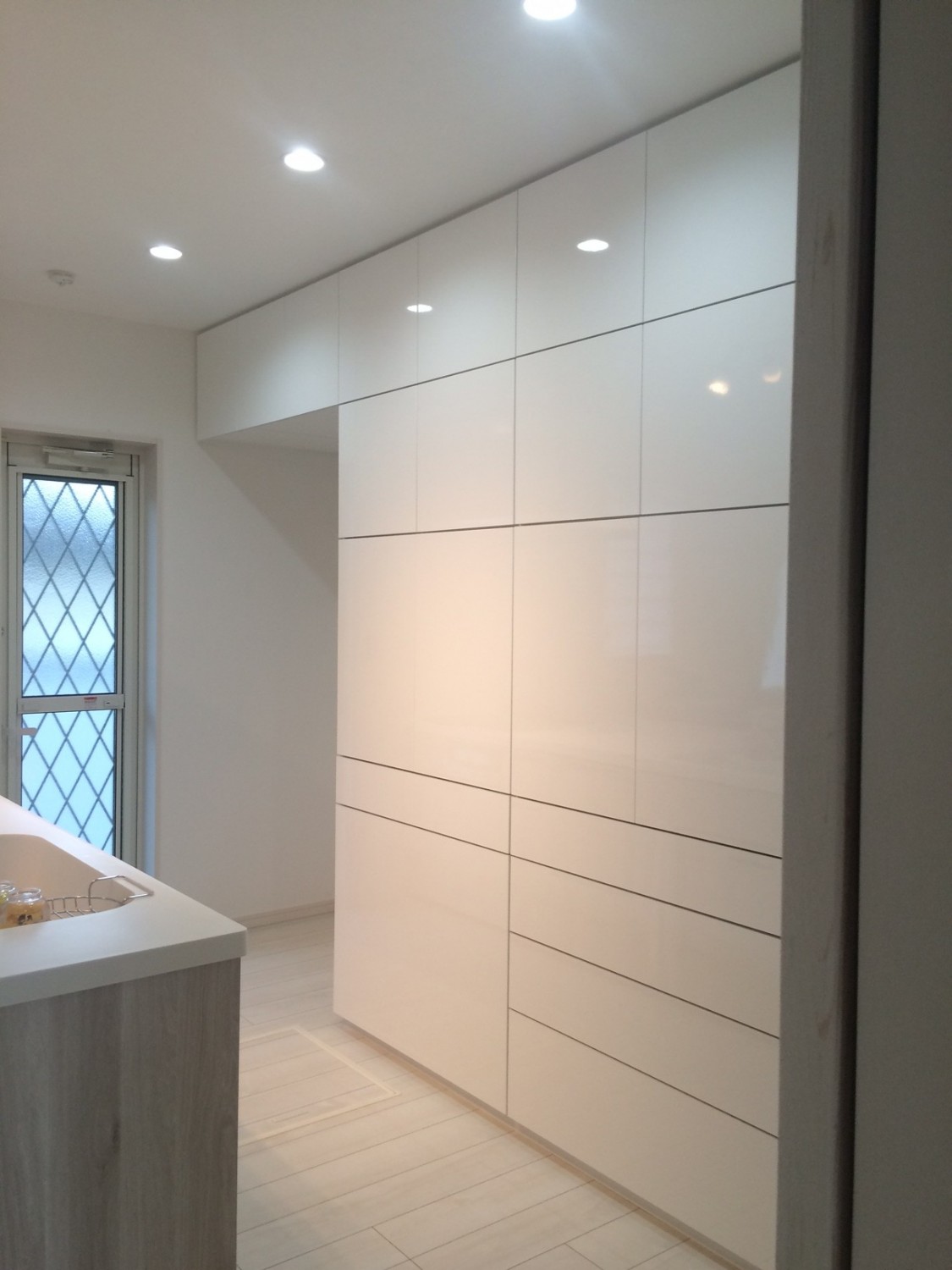それでも圧迫感がないのは面材が白の鏡面だからです。