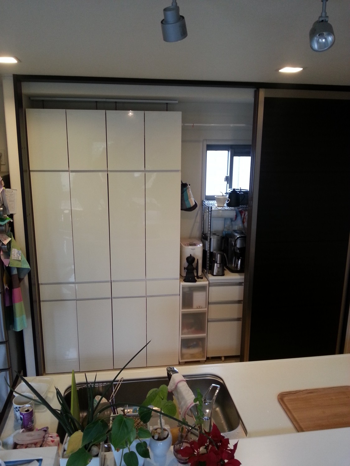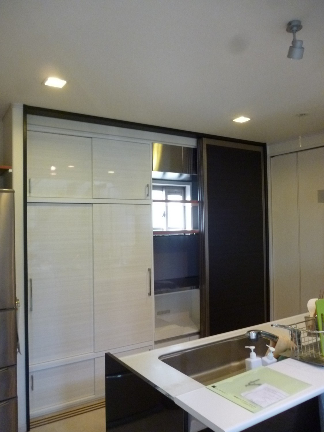戸建てへの納品でしたが既存の黒い大きな引き戸が3枚あり、既製品の家具が納まっています。