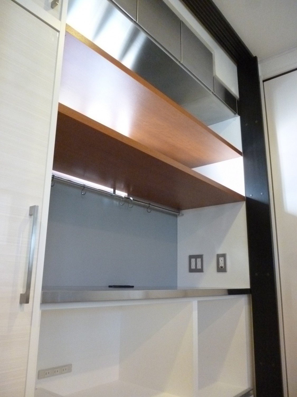収納力も確保しながら家電や鍋類を見せる(魅せる)収納にする為、一番時間をかけ、相談をさせて頂いた箇所です。