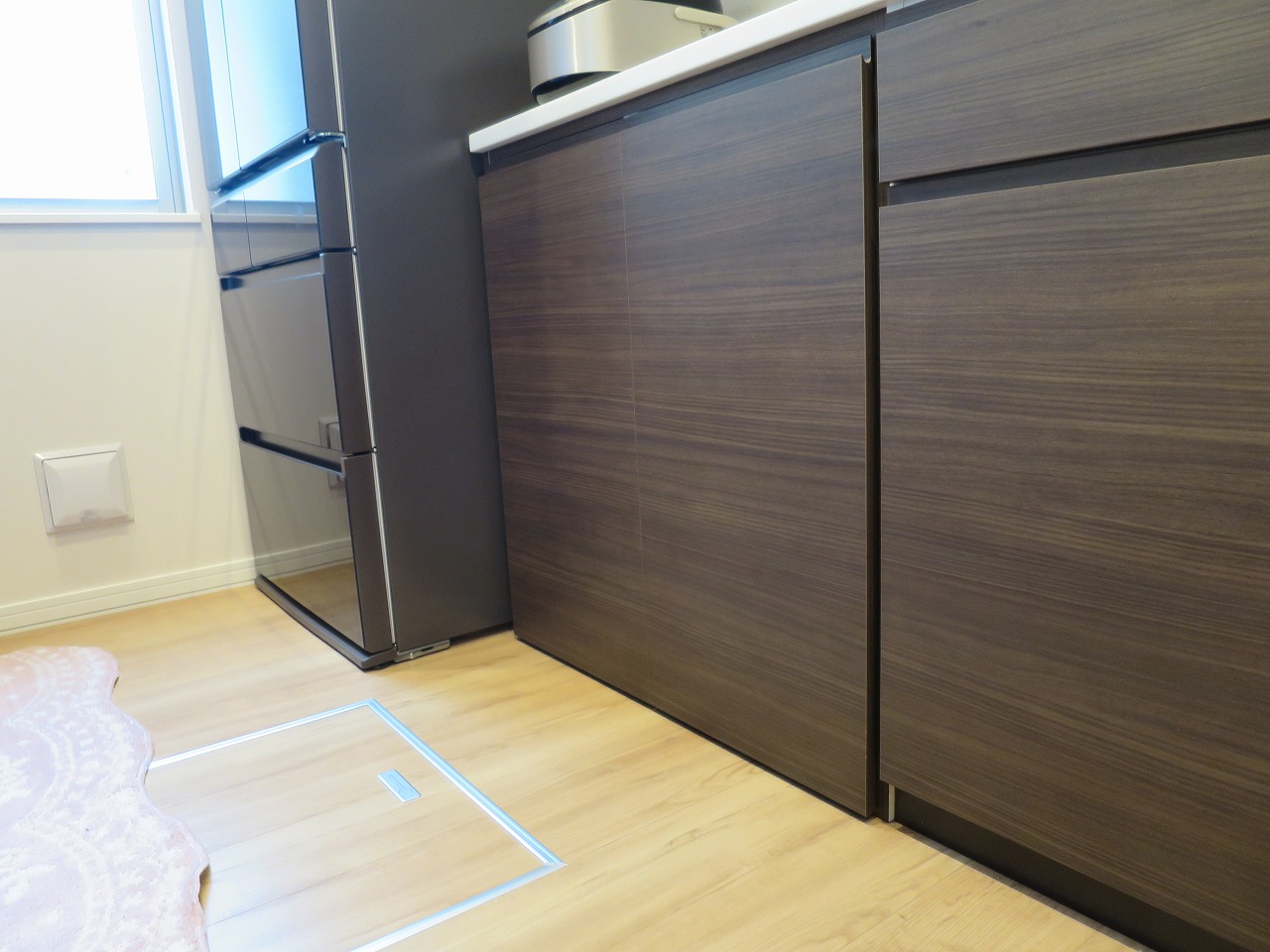 ちなみに、炊飯器を収納する『炊飯器スライド天板』もスライドイン扉内部に設置が可能です。これならば扉が邪魔をしないのでストレス無しで家電を使用することができます。